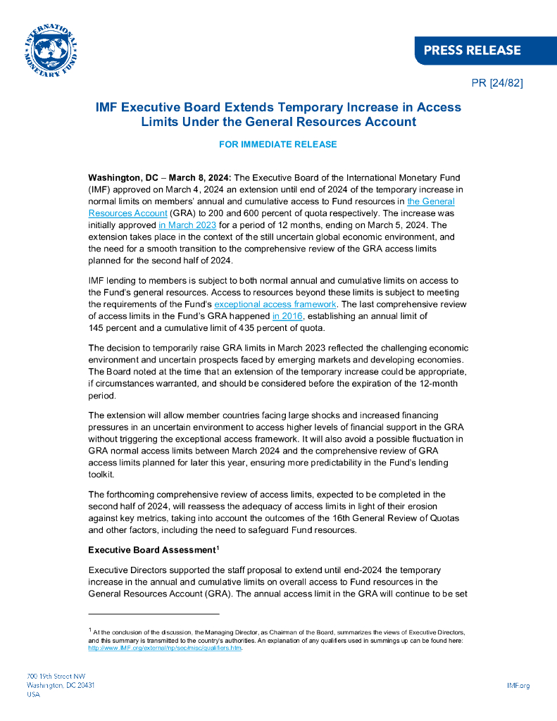 国际货币基金组织:2024延长一般资源账户下正常使用限额的临时增加额报告(英文版).pdf