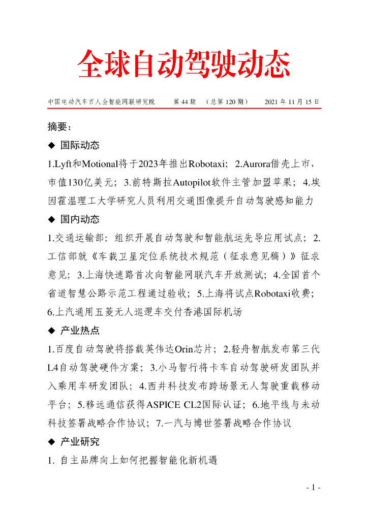 车百智库:第44期(总第120期)全球自动驾驶发展动态.pdf
