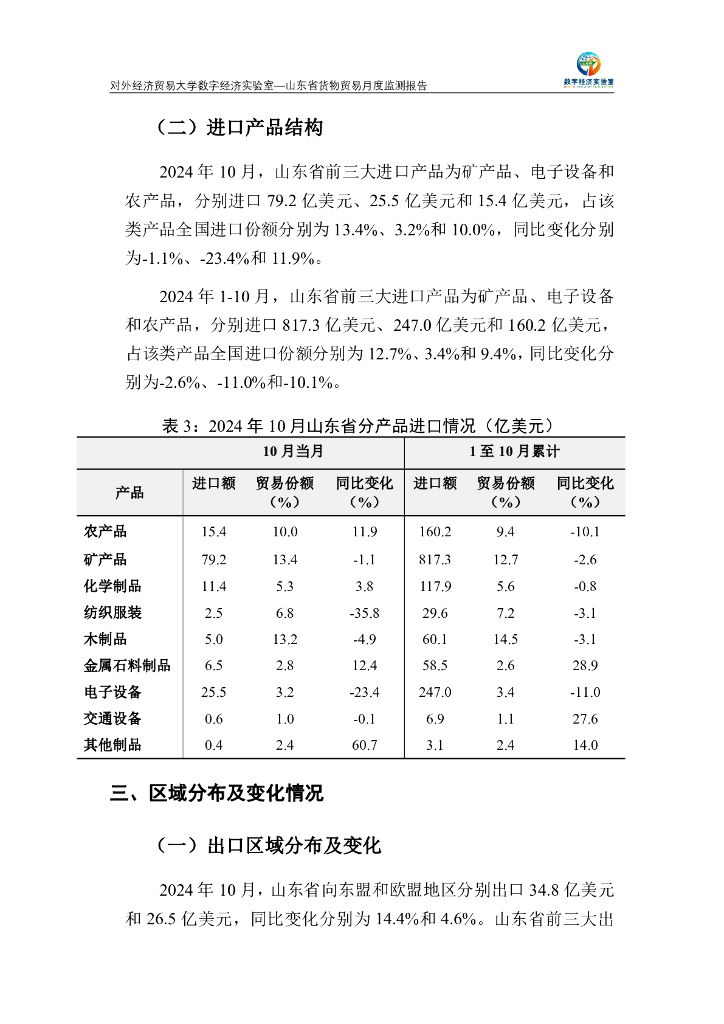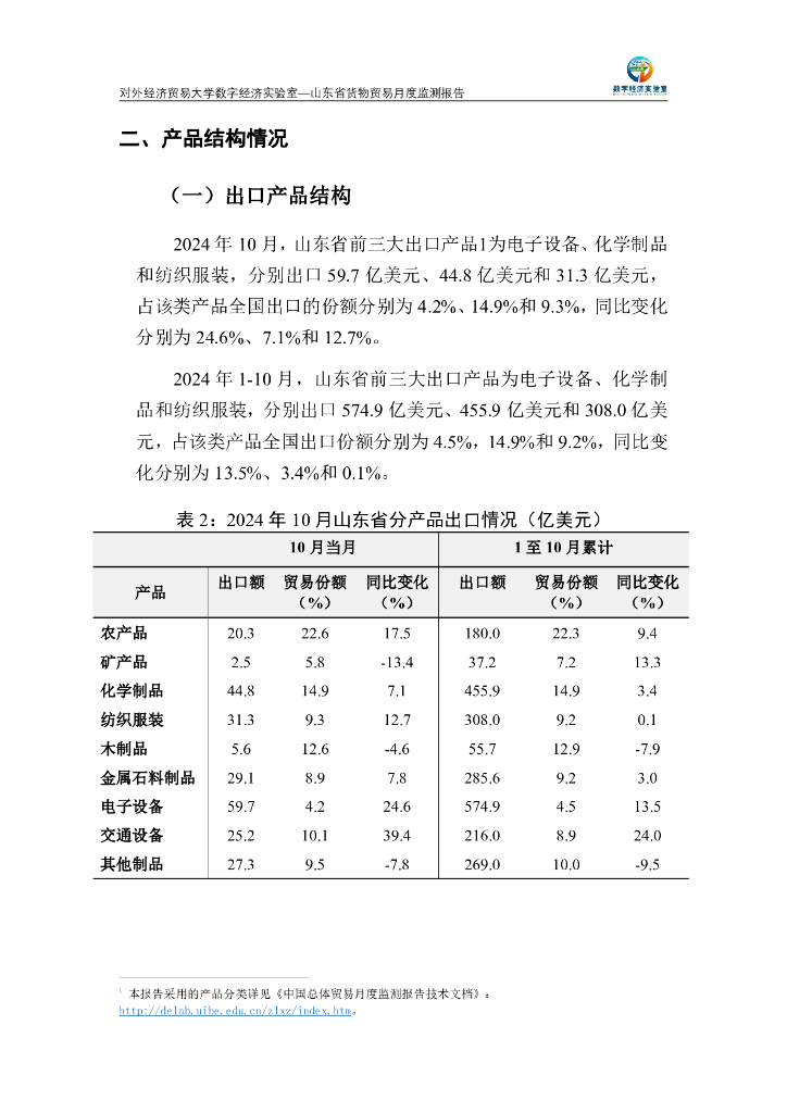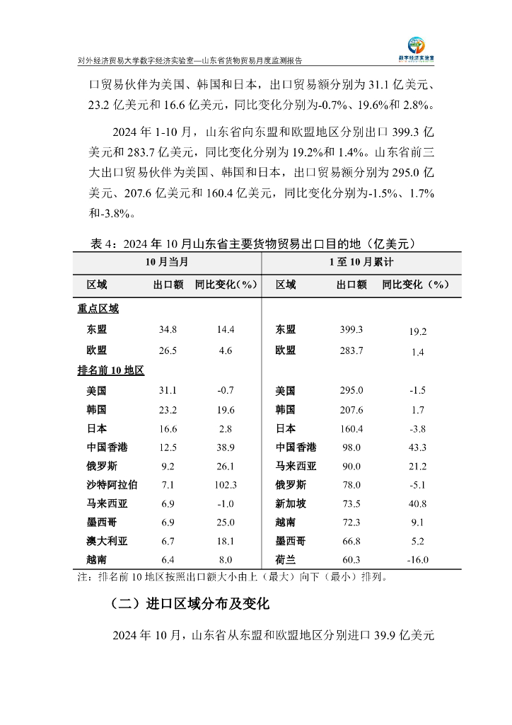 对外经济贸易大学:山东省货物贸易月度监测报告(2024年1-10月).pdf