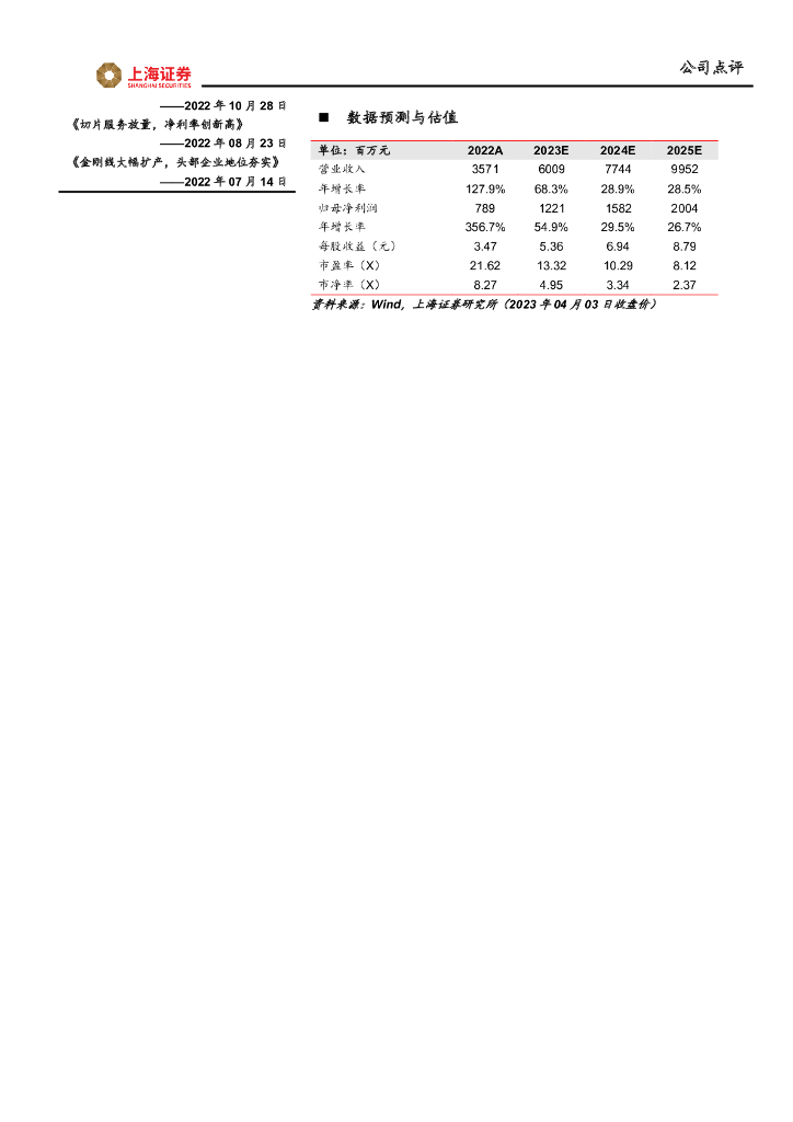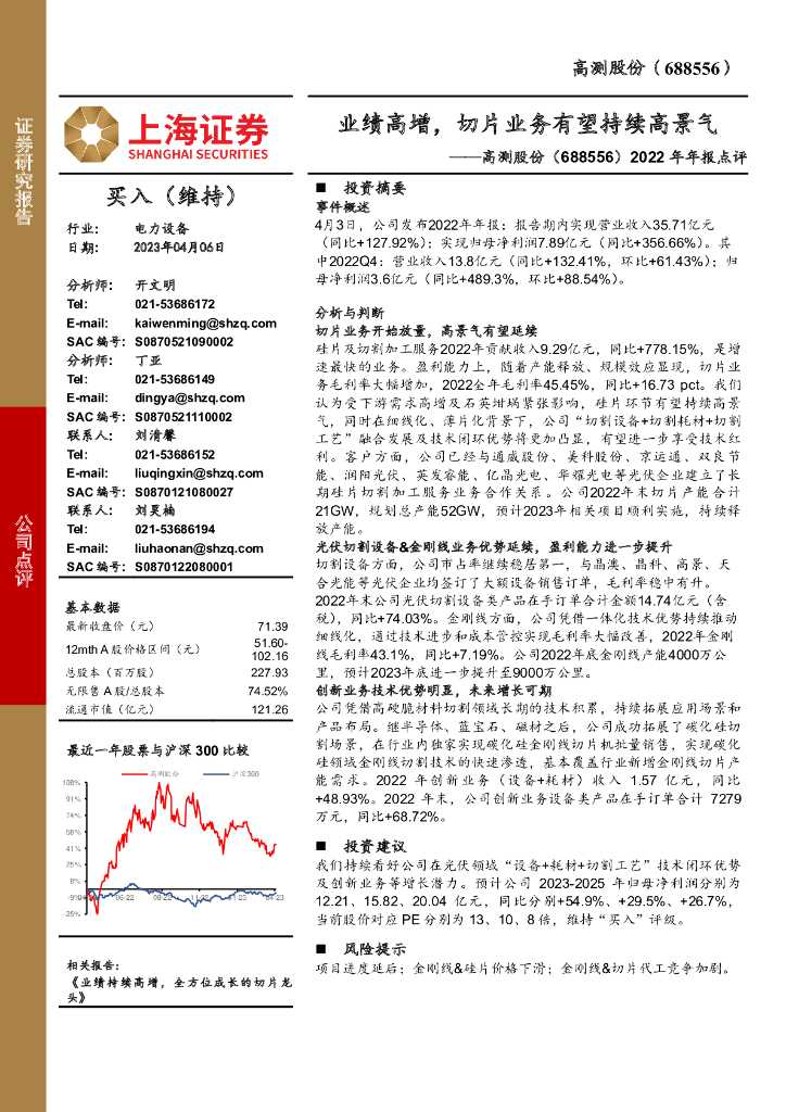 上海证券:高测股份(688556)-2022年年报点评:业绩高增,切片业务有望持续高景气.pdf