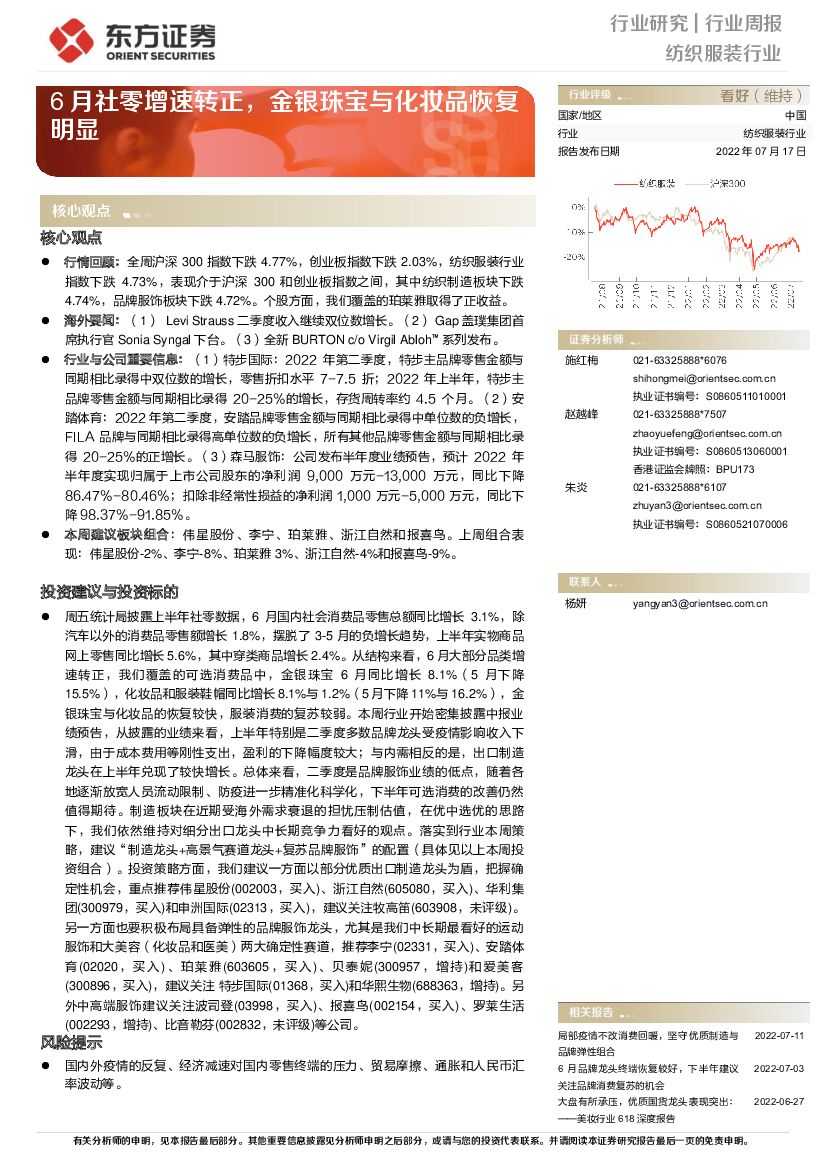 东方证券:纺织服装行业行业周报:6月社零增速转正,金银珠宝与化妆品恢复明显.pdf