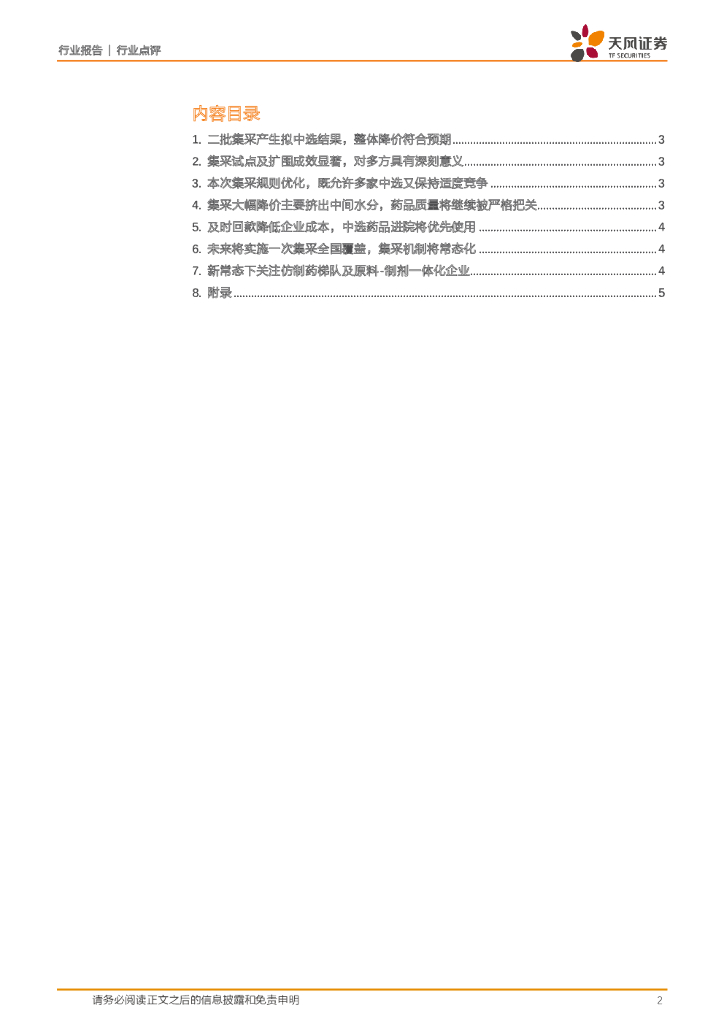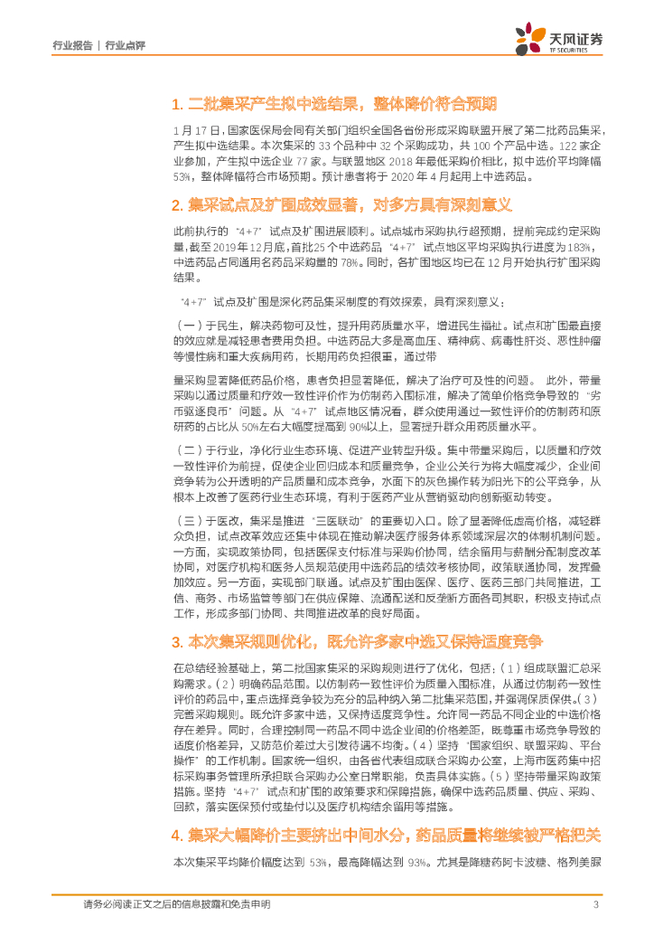 天风证券:医药生物行业点评:二批集采产生拟中选结果,整体价格降幅符合预期.pdf