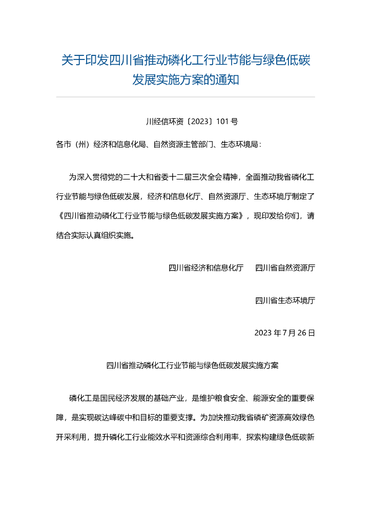 四川省推动磷化工行业节能与绿色低碳发展实施方案.doc
