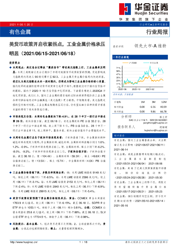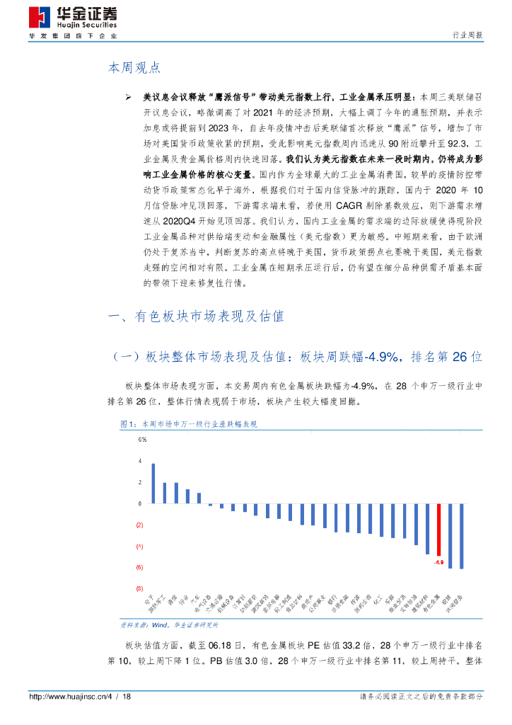 华金证券:有色金属行业周报:美货币政策开启收紧拐点,工业金属价格承压明显.pdf