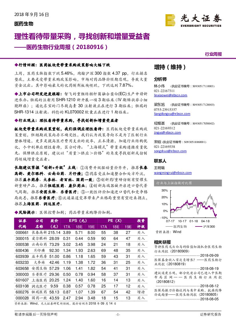 光大证券:医药生物行业周报:理性看待带量采购,寻找创新和增量受益者.pdf