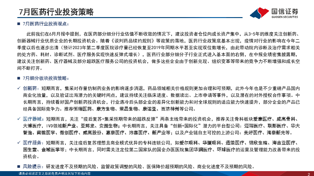 国信证券:医药生物行业2023年7月投资策略:底部特征已然明确,静待业绩持续兑现.pdf