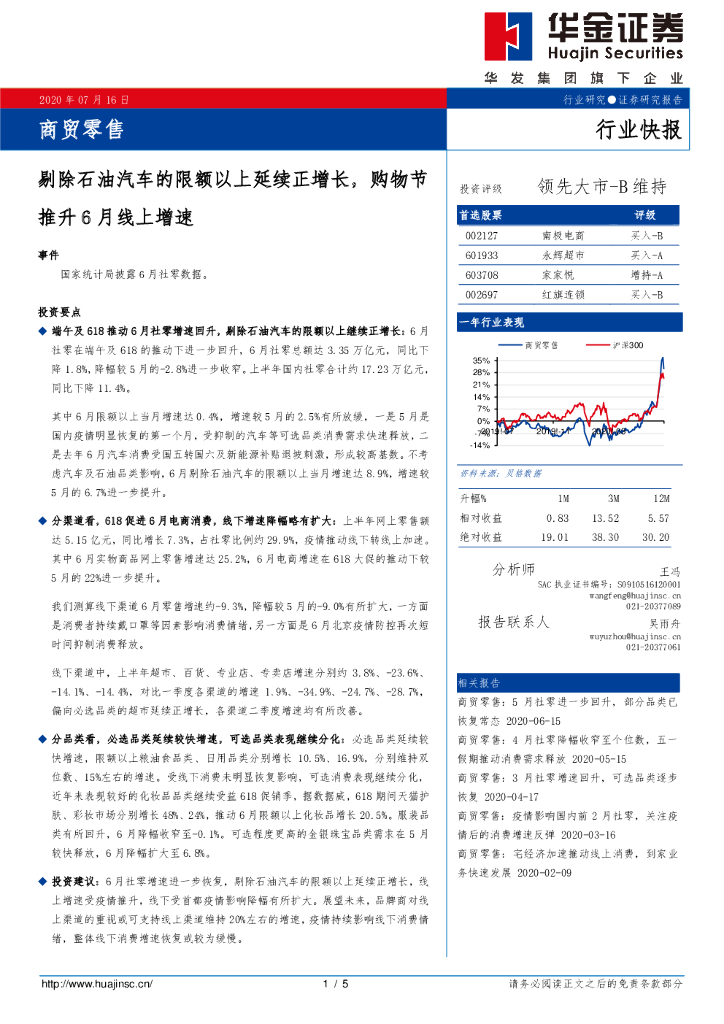 华金证券:商贸零售行业快报:剔除石油汽车的限额以上延续正增长,购物节推升6月线上增速.pdf