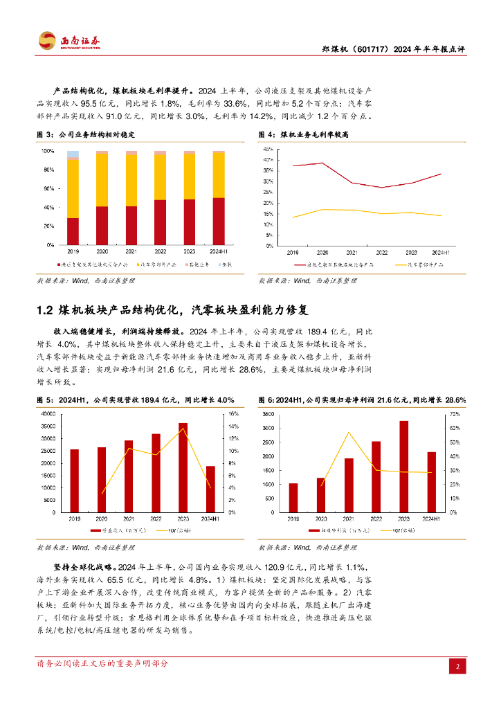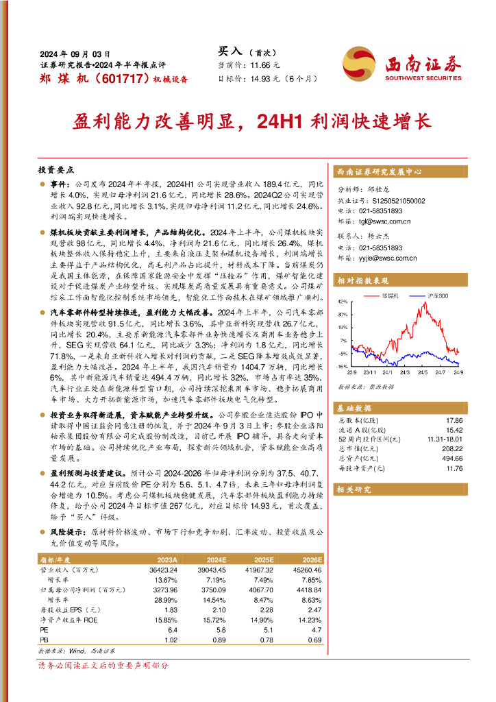 西南证券:郑煤机(601717)-2024年半年报点评:盈利能力改善明显,24H1利润快速增长.pdf