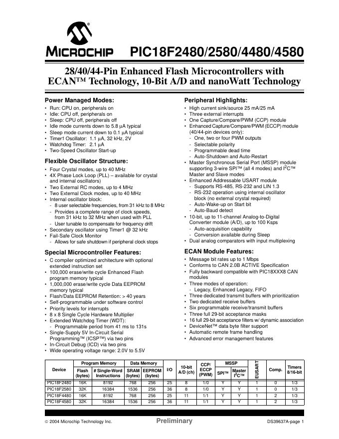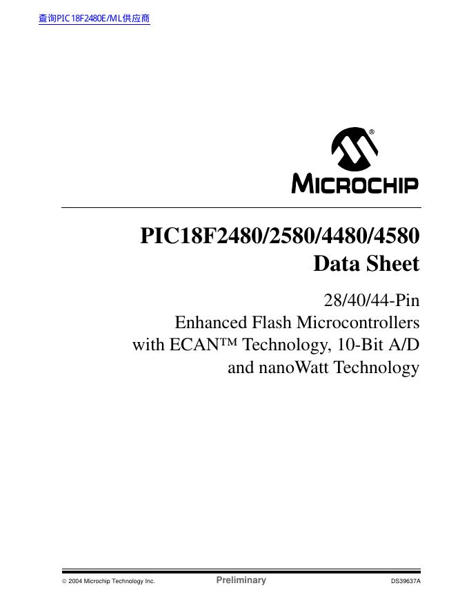 MICROCHIP PIC18F2480/2580/4480/4580 数据手册.pdf