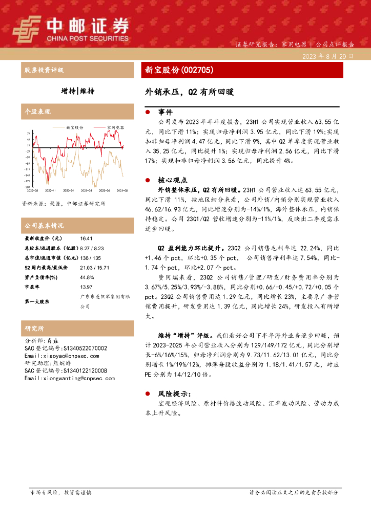 中邮证券:新宝股份(002705)-外销承压,Q2有所回暖.pdf
