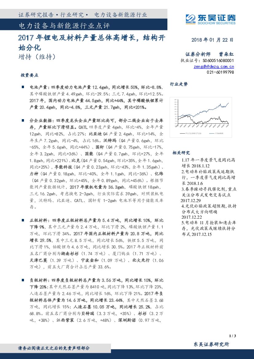 东吴证券:电力设备与新能源行业点评:2017年锂电及材料产量总体高增长,结构开始分化.pdf