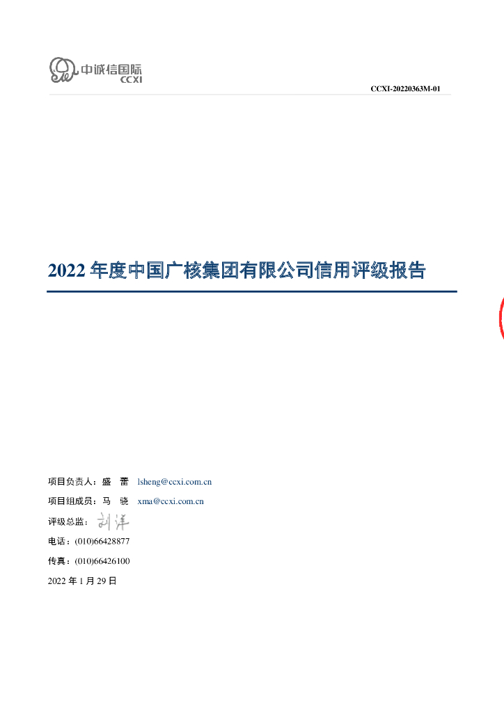 中诚信:中国广核集团有限公司2022年度信用评级报告及跟踪评级安排.pdf