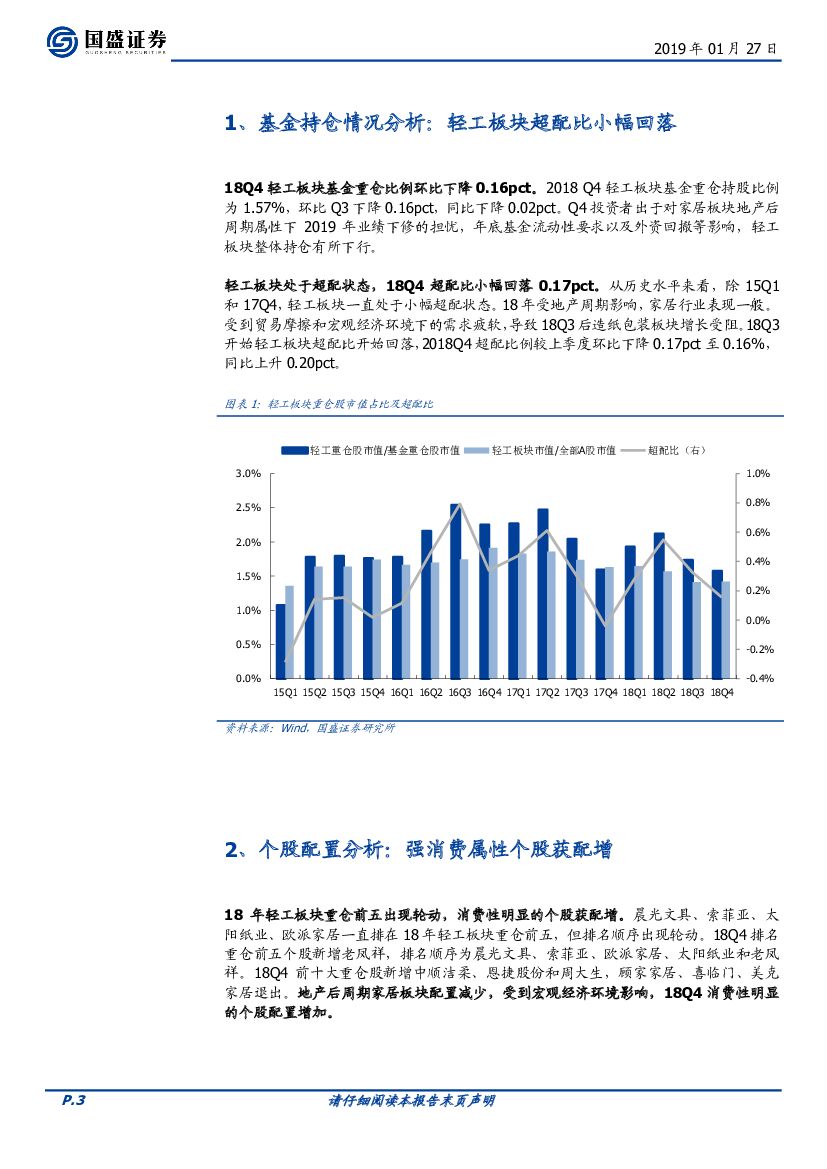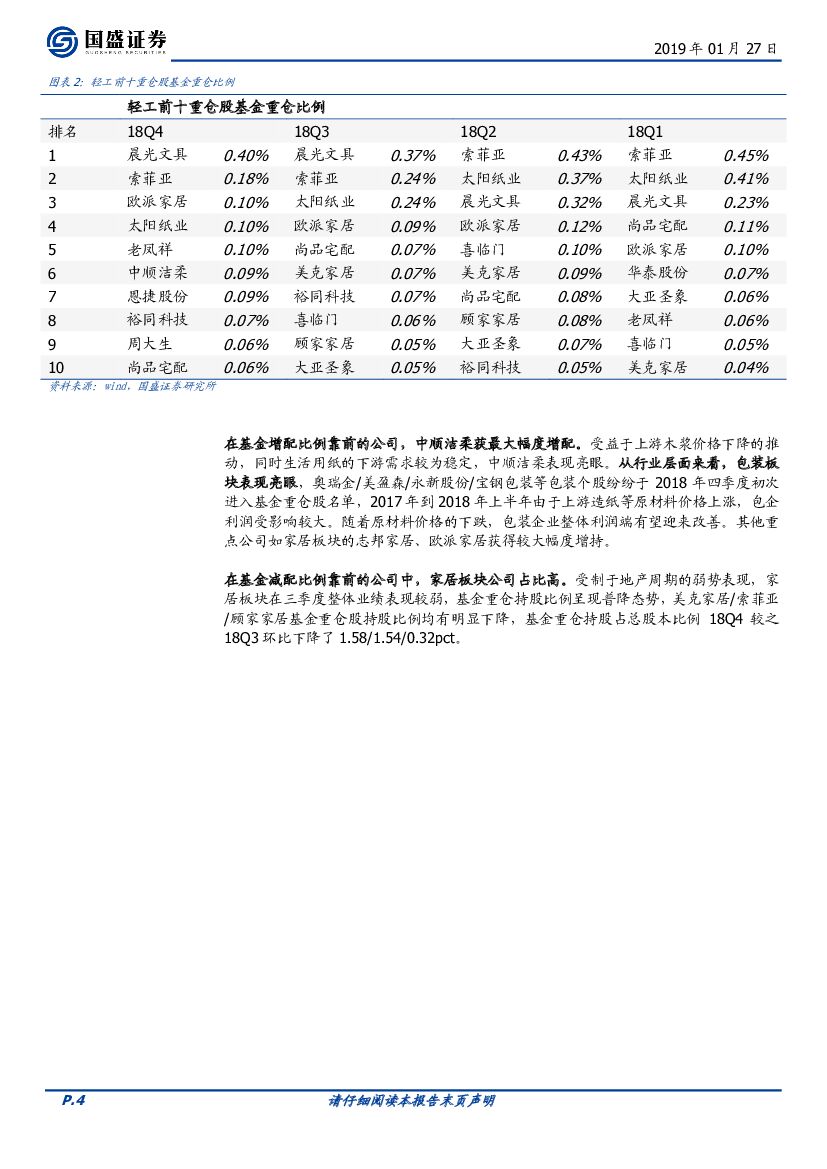 国盛证券:轻工制造行业点评:18Q4轻工板块超配比小幅回落,强消费属性个股获配增.pdf