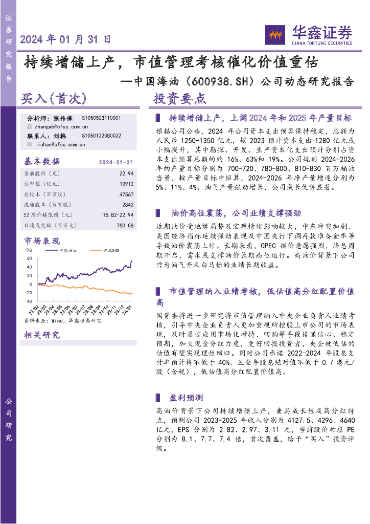 华鑫证券:中国海油(600938)-公司动态研究报告:持续增储上产,市值管理考核催化价值重估.pdf