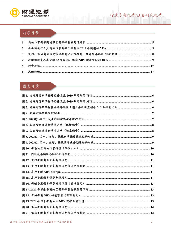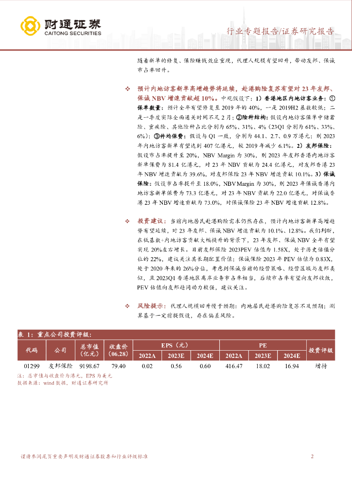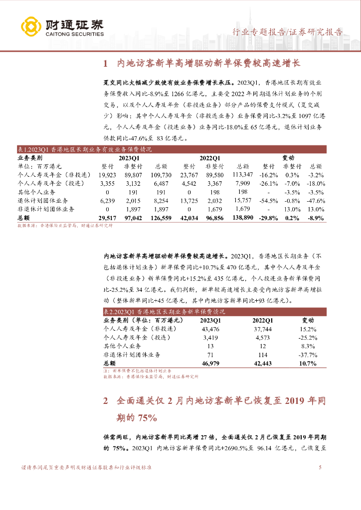 财通证券:保险Ⅱ行业专题报告:香港地区Q1保费跟踪:内地访客新单恢复至2019年同期的75%,预计友邦、保诚香港NBV高增有望延续.pdf