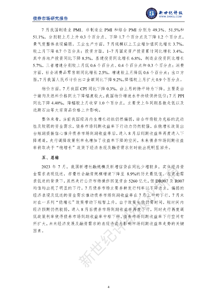 新世纪评级:再度降息后债券市场期收益率中枢下移-2023年7月债券市场利率分析.pdf