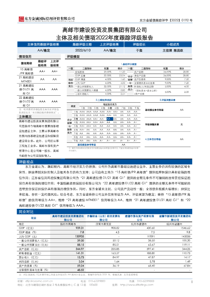东方金诚:高邮市建设投资发展集团有限公司主体及相关债项2022年度跟踪评级报告.pdf