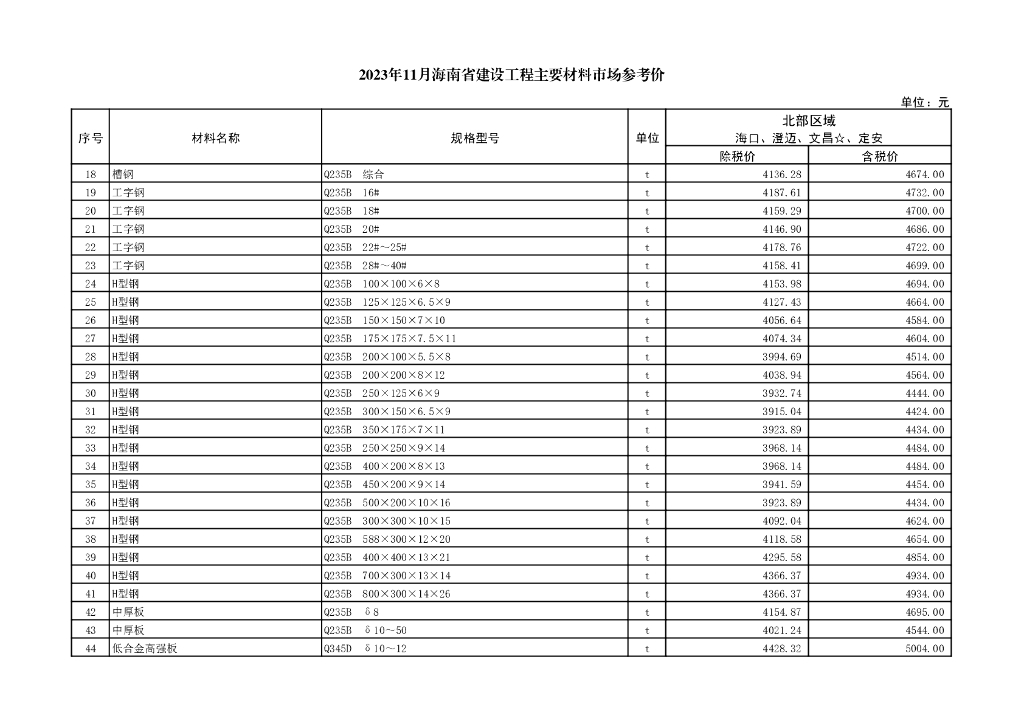 2023年11月海南省建设工程材料市场参考价.pdf