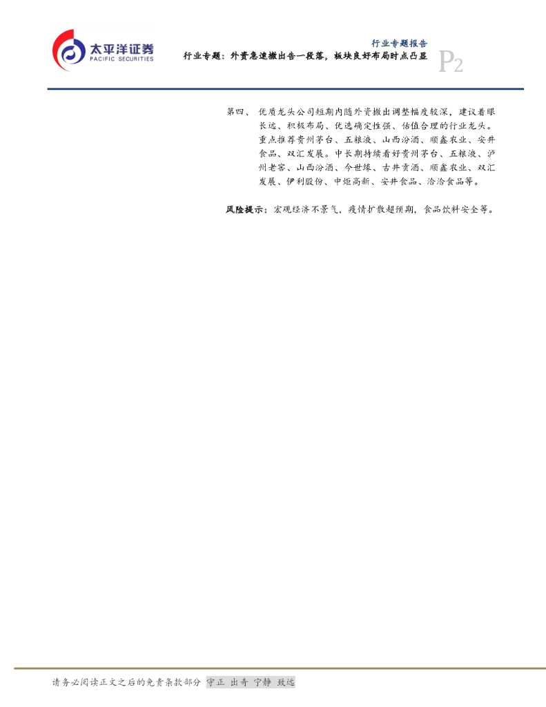 太平洋证券:食品、饮料与烟草行业专题:外资急速撤出告一段落,板块良好布局时点凸显.pdf