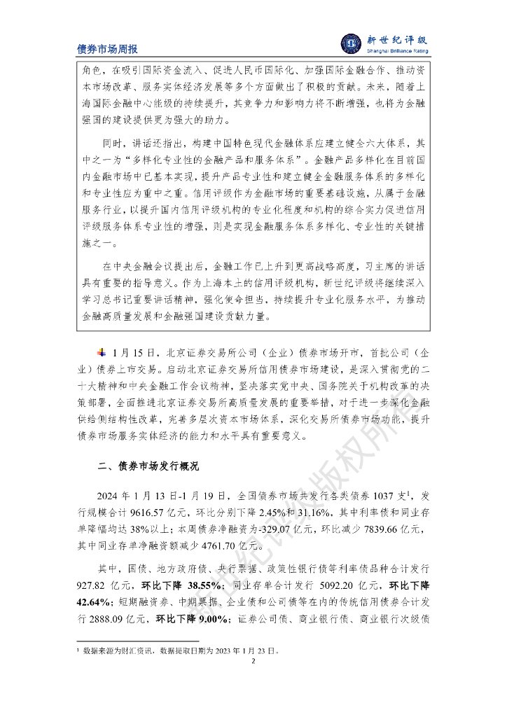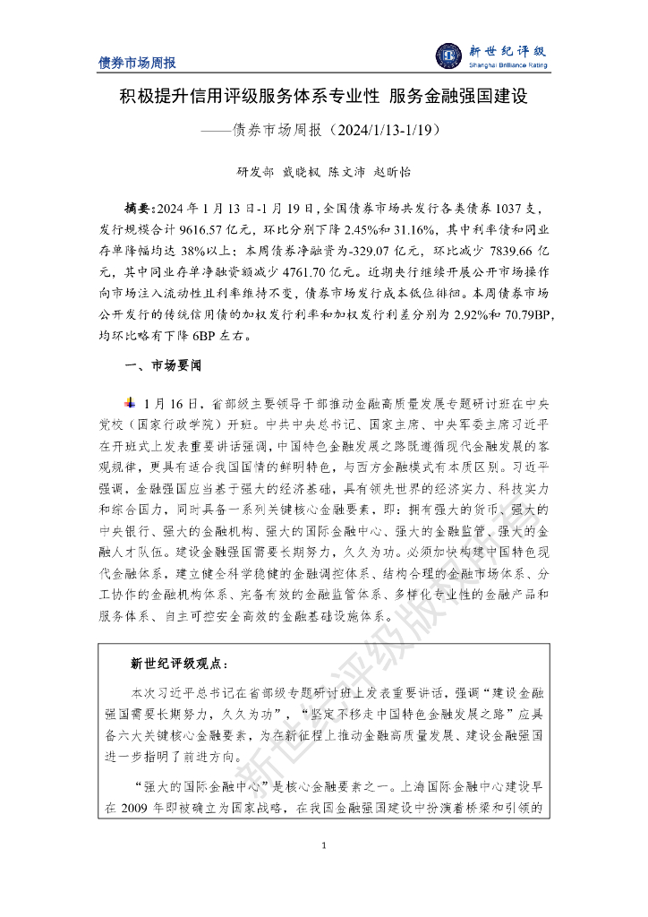 新世纪评级:积极提升信用评级服务体系专业性 服务金融强国建设——债券市场周报(2024/1/13-1/19).pdf