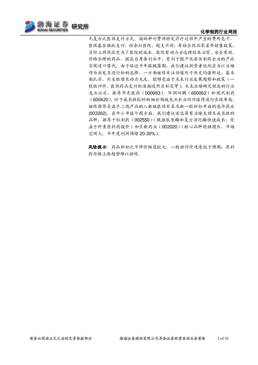 渤海证券:化学制药行业周报:继续看好低估值行业龙头,逐步布局成长股.pdf