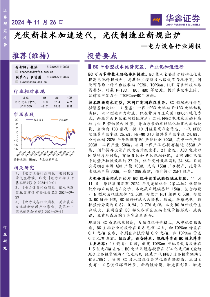 华鑫证券:电力设备行业周报:光伏新技术加速迭代,光伏制造业新规出炉.pdf