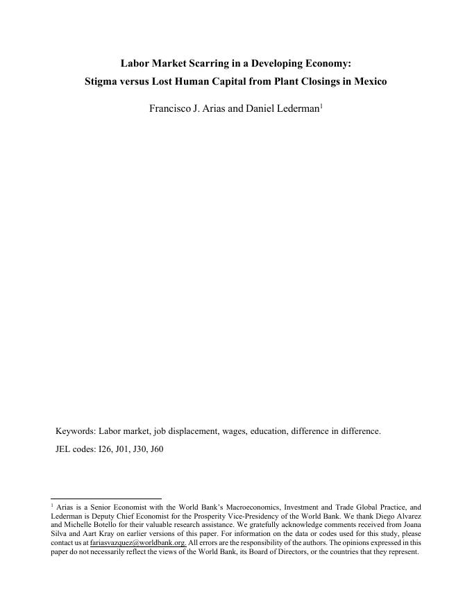 世界银行:发展中经济体的劳动力市场恐慌:墨西哥工厂关闭带来的耻辱与人力资本损失(英文版).pdf