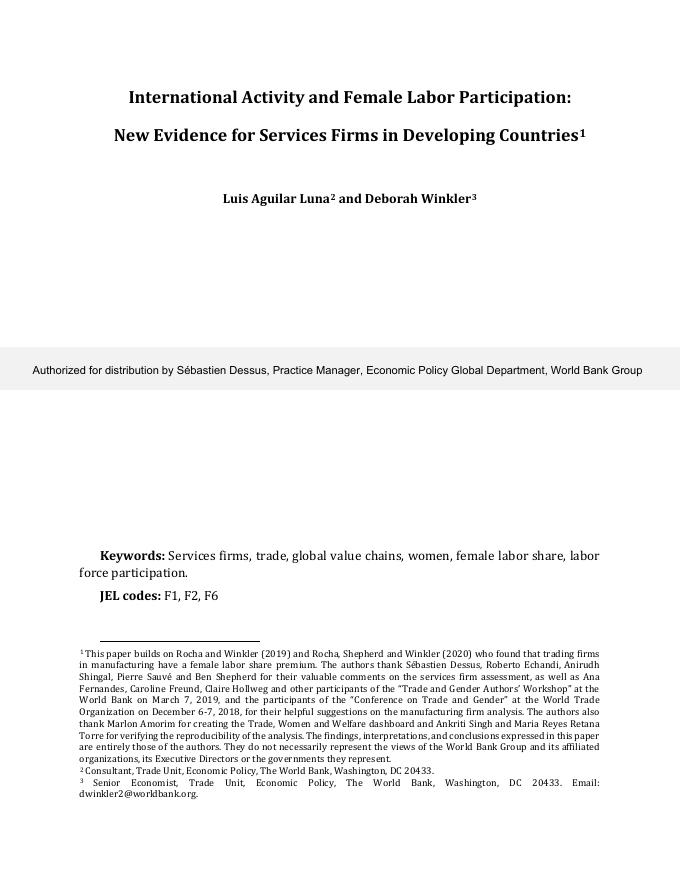 世界银行:国际活动与女性劳动力参与:发展中国家服务企业的新证据(英文版).pdf