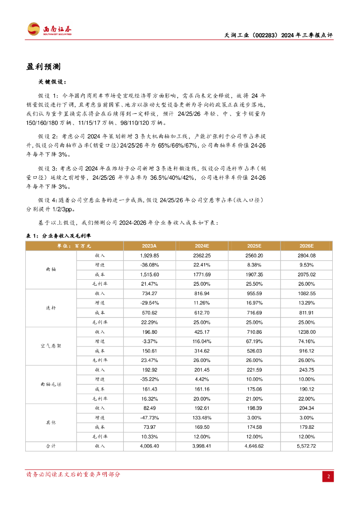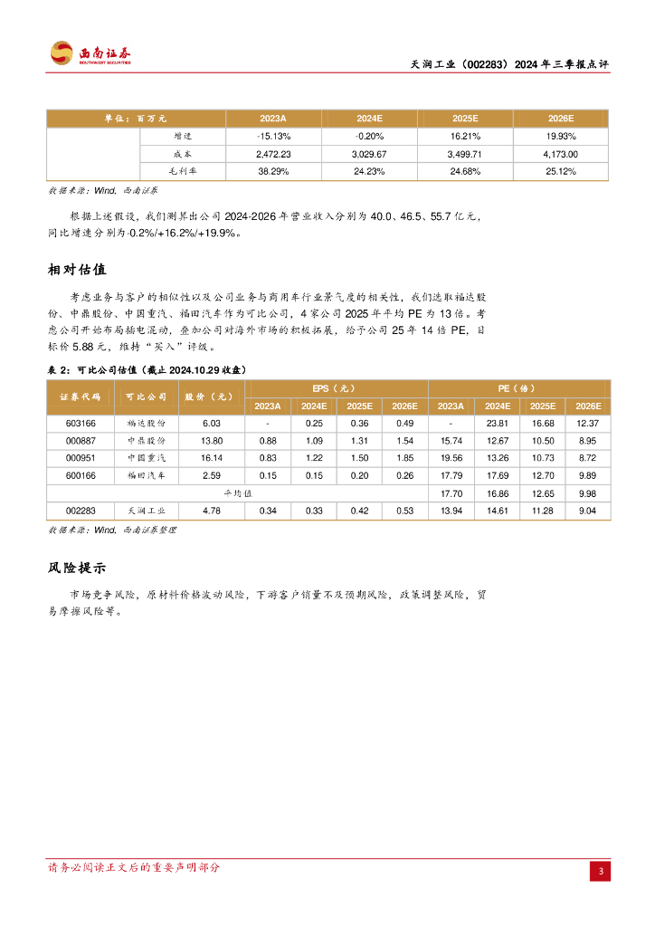 西南证券:天润工业(002283)-2024年三季报点评:公司业绩短期承压,积极拓展新成长空间.pdf