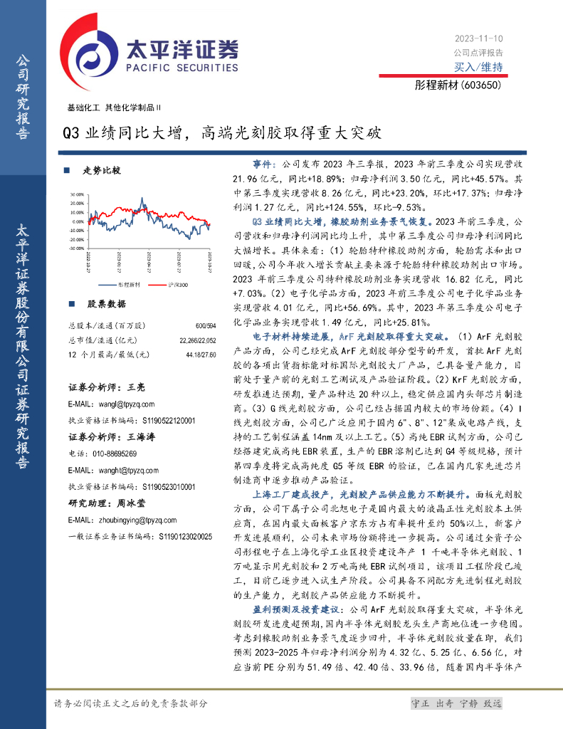 太平洋证券:彤程新材(603650)-Q3业绩同比大增,高端光刻胶取得重大突破.pdf