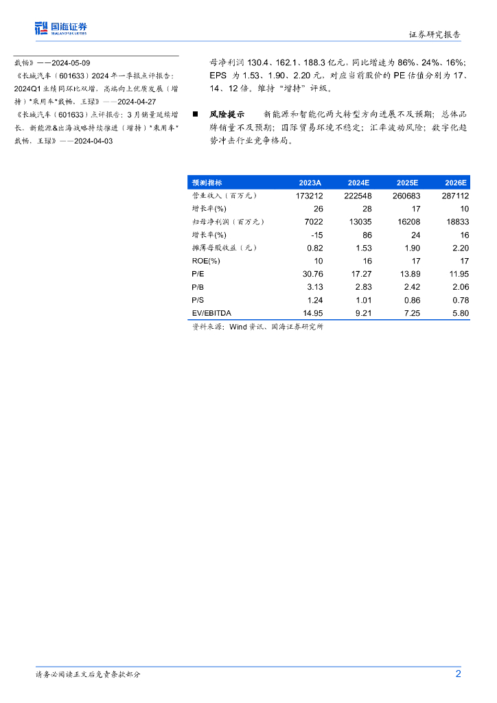 国海证券:长城汽车(601633)-2024年半年度业绩点评:2024Q2业绩超预期,高端向上优质发展.pdf