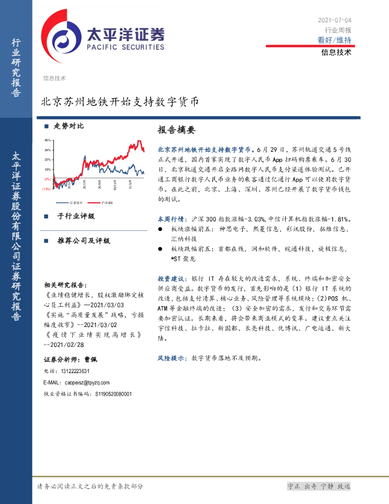 太平洋证券:信息技术行业周报:北京苏州地铁开始支持数字货币.pdf
