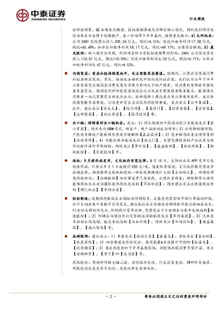 中泰证券:轻工制造及纺织服装行业周报:安踏、台华业绩靓丽,重申百亚股份推荐.pdf