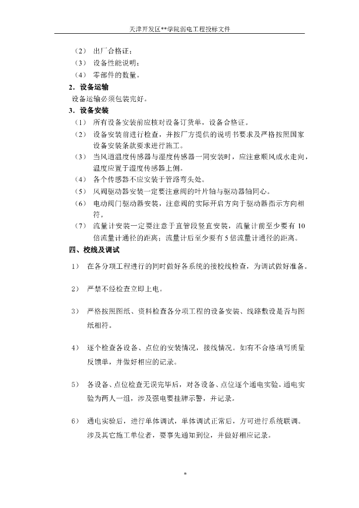 天津开发区某学院BAS(楼宇自控)系统施工组织设计方案.doc
