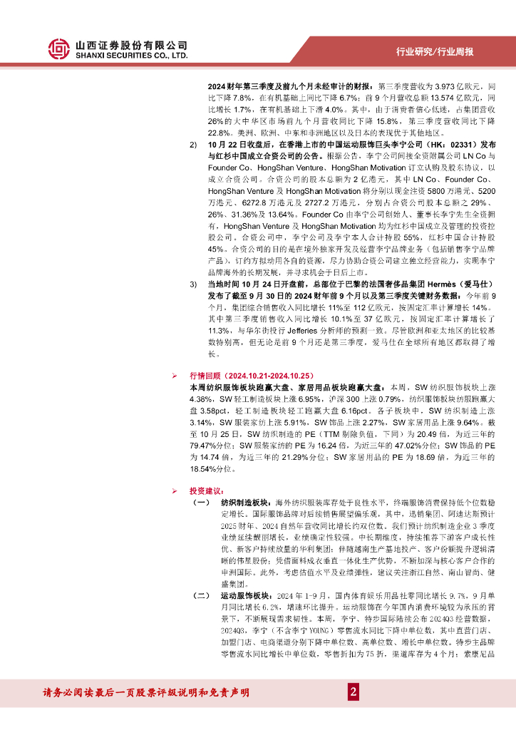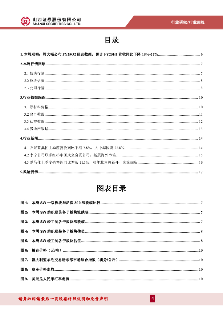 山西证券:纺织服装行业周报:周大福公布FY25Q2经营数据,预计FY25H1营收同比下降18%-22%.pdf
