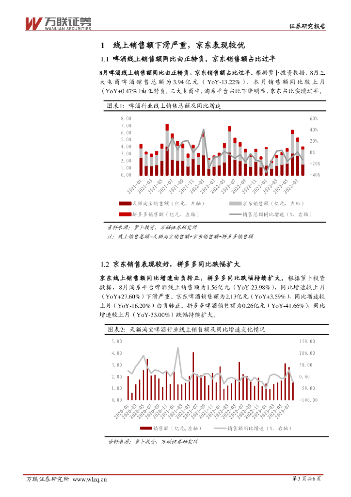 万联证券:啤酒行业8月电商数据跟踪:8月啤酒线上销售额下滑,同比由正转负.pdf