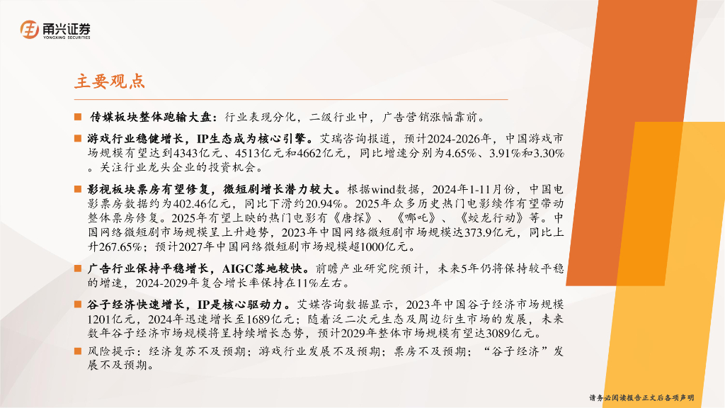 甬兴证券:传媒行业2025年年度策略:IP助力悦己消费,“谷子经济”打开新的空间.pdf