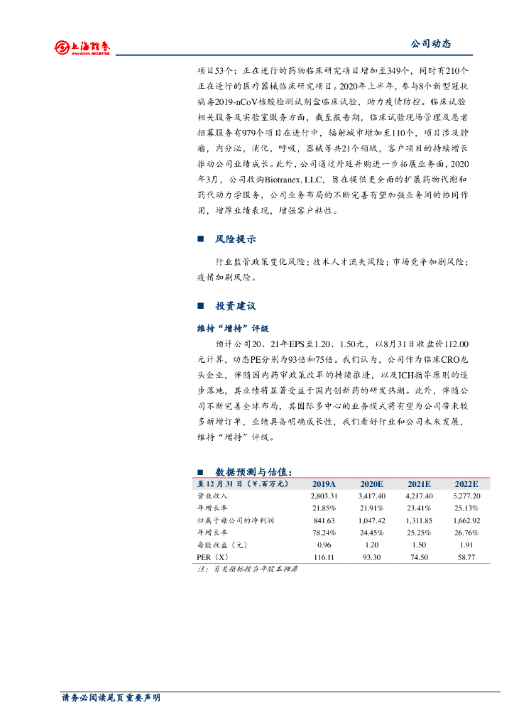 上海证券:泰格医药(300347)-2020年中报点评:业绩逐步恢复 项目数量持续增长.pdf