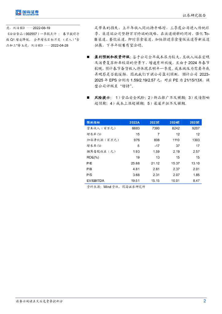 国海证券:洽洽食品(002557)-2023年半年报点评:收入环比提速,成本进一步承压.pdf