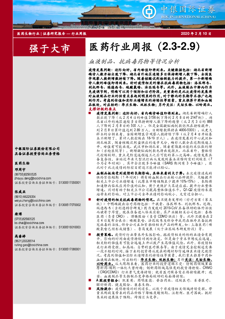 中银证券:医药行业周报:血液制品、抗病毒药物等情况分析.pdf