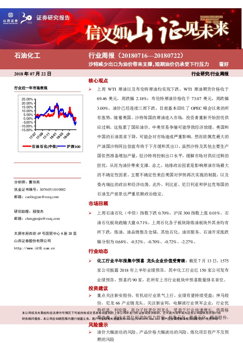 山西证券:石油化工行业周报:沙特减少出口为油价带来支撑,短期油价仍承受下行压力.pdf