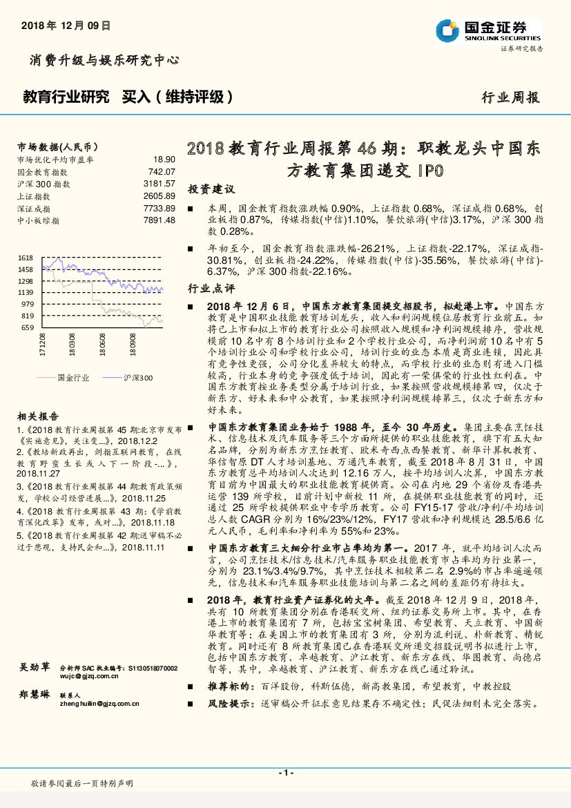 国金证券:2018教育行业周报第46期:职教龙头中国东方教育集团递交IPO.pdf