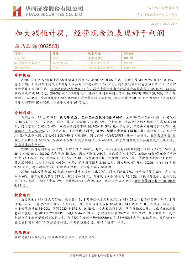 华西证券:森马服饰(002563)-加大减值计提,经营现金流表现好于利润.pdf