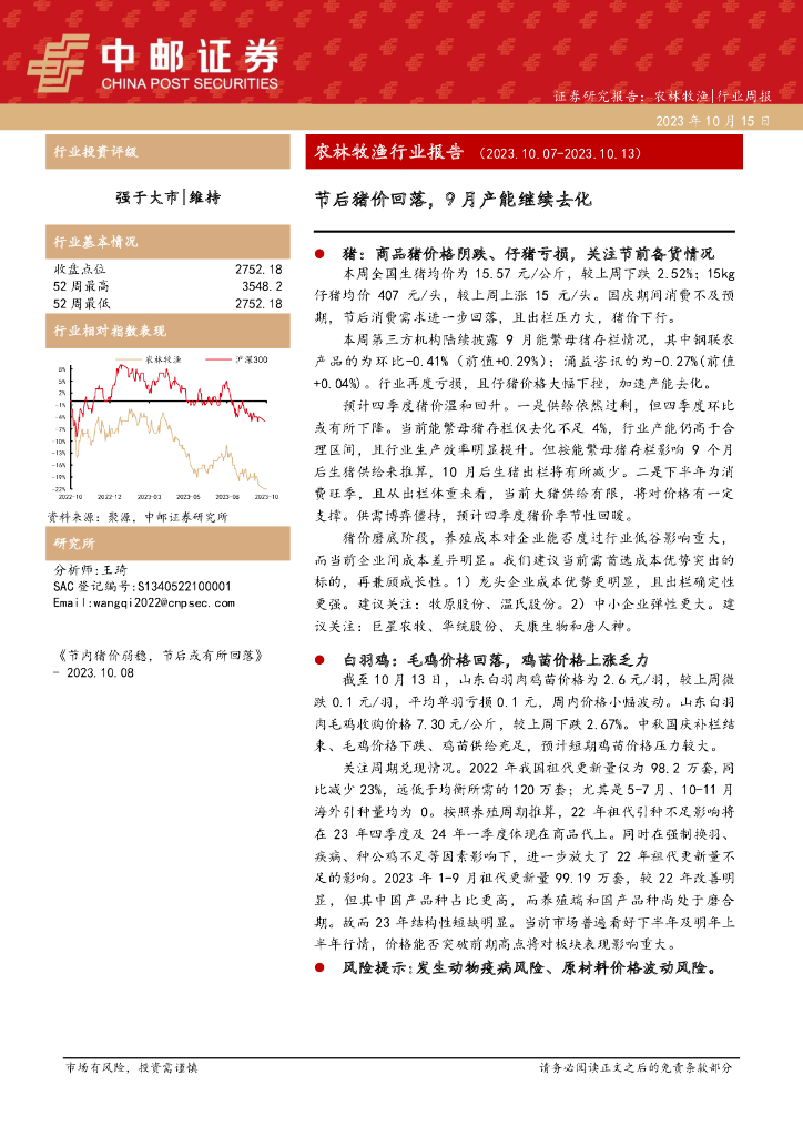 中邮证券:农林牧渔行业周报:节后猪价回落,9月产能继续去化.pdf