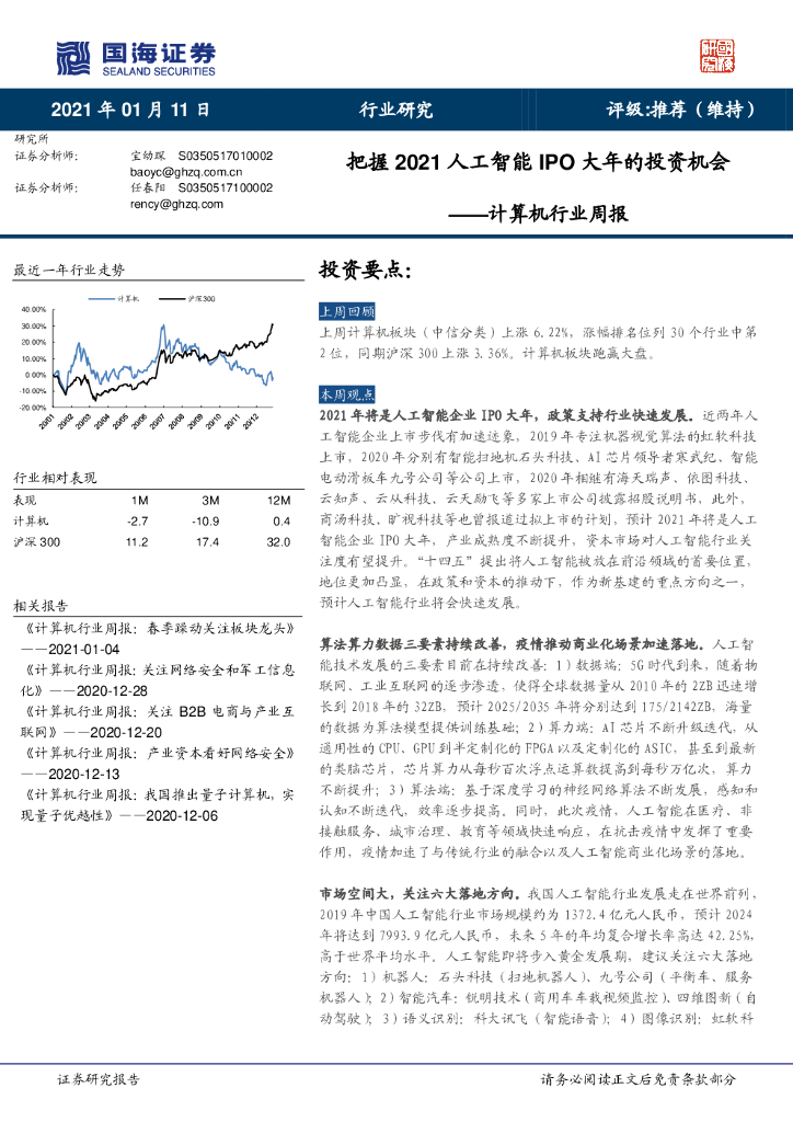 国海证券:计算机行业周报:把握2021人工智能IPO大年的投资机会.pdf