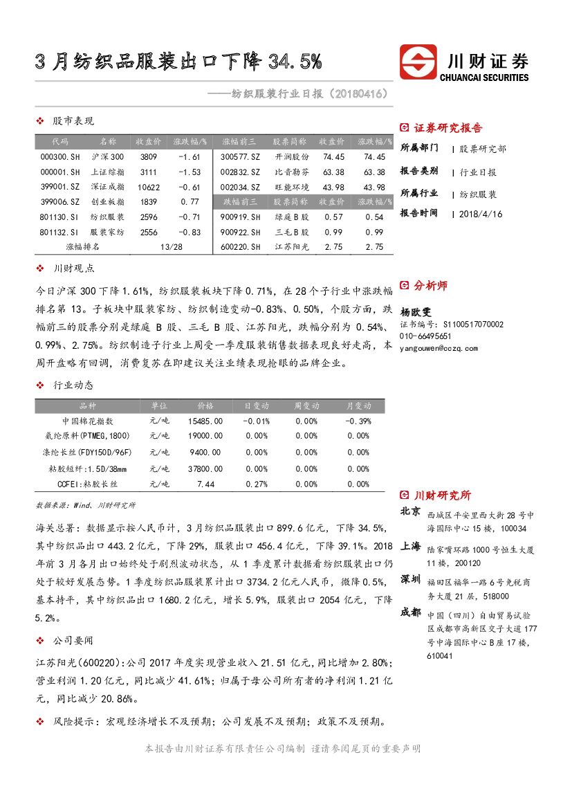 川财证券:纺织服装行业日报:3月纺织品服装出口下降34.5%.pdf