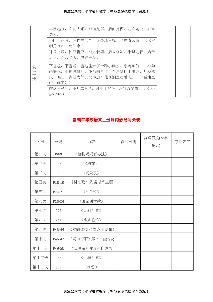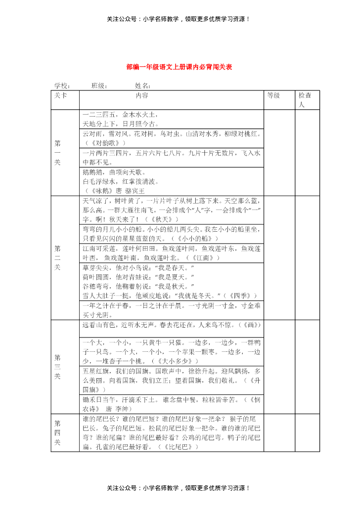 统编版小学1-6年级语文上册课文背诵闯关表.pdf