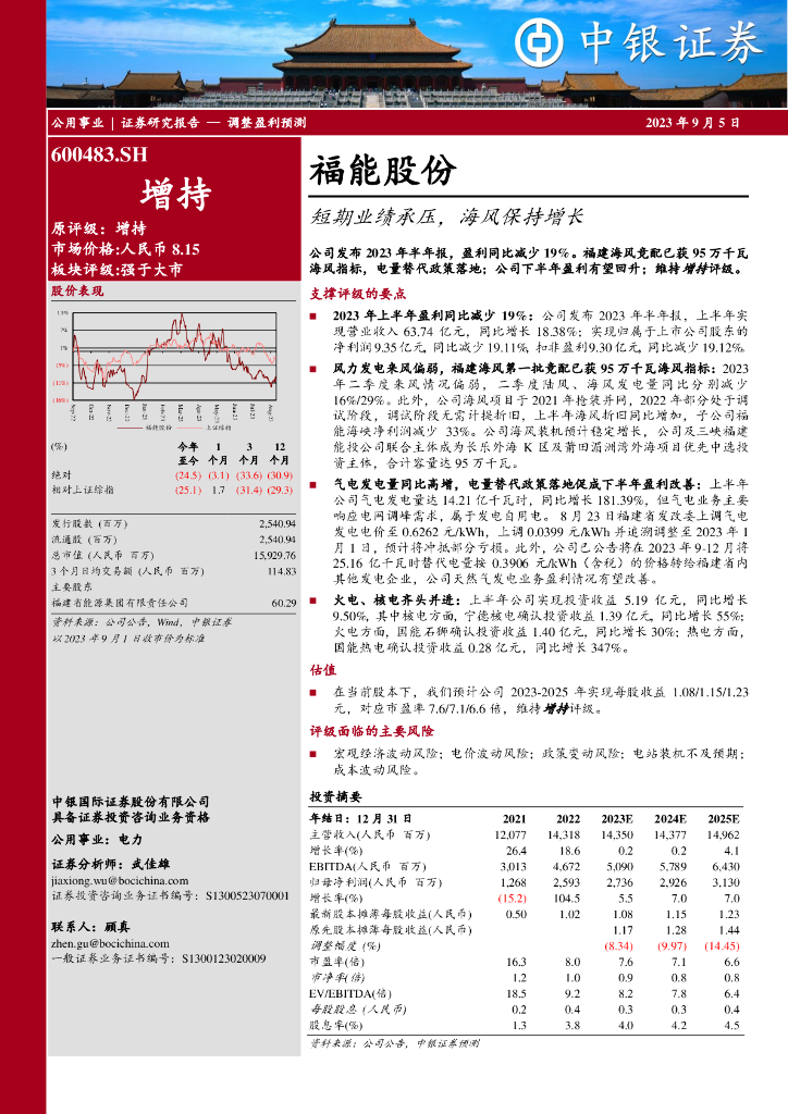 中银证券:福能股份(600483)-短期业绩承压,海风保持增长.pdf
