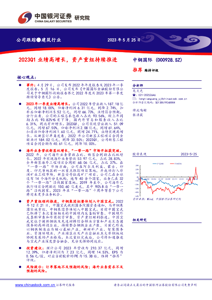 中国银河:中钢国际(000928)-2023Q1业绩高增长,资产重组持续推进.pdf