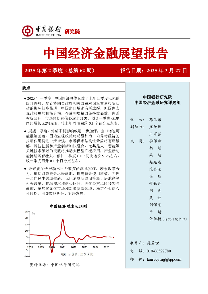 中国银行研究院:中国银行中国经济金融展望报告(2025年第2季度):更加积极有为宏观政策巩固经济恢复态势.pdf
